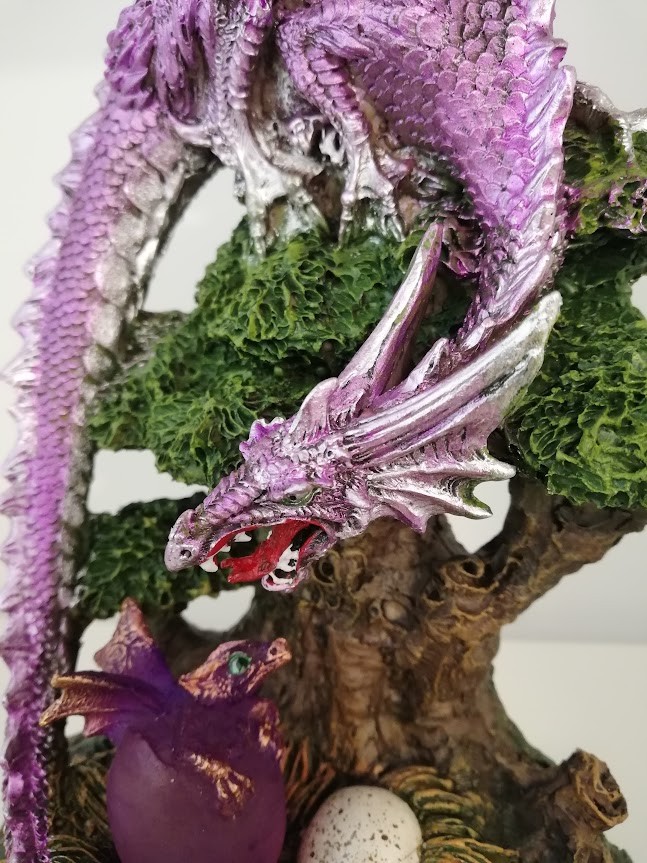 Maman dragon violet et son bébé lumineux.