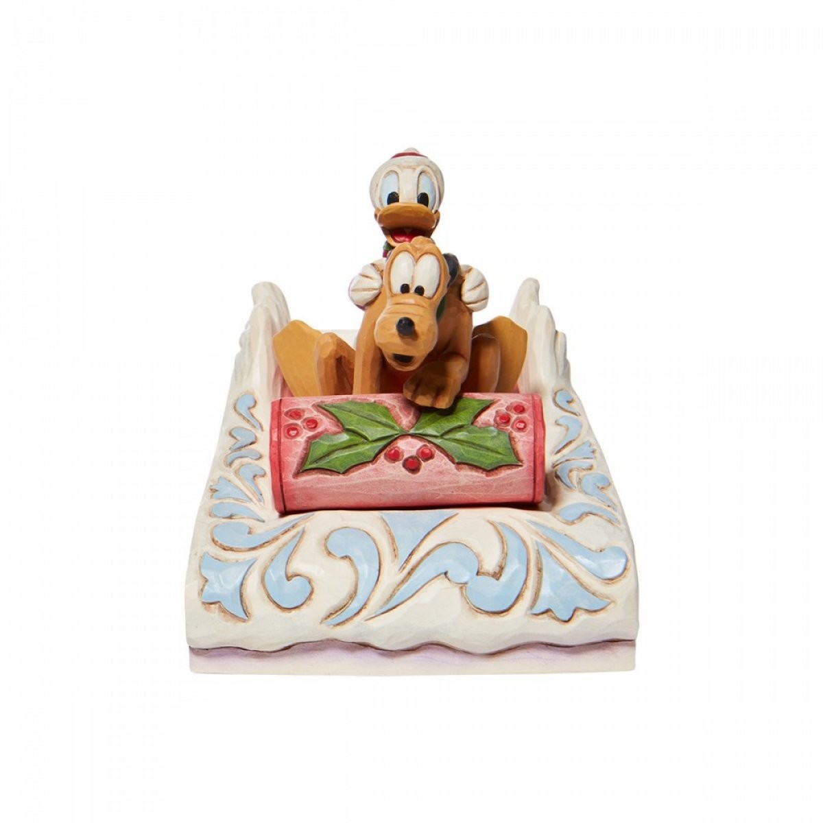 Cette magnifique figurine présente Donald et Pluto font de la luge.